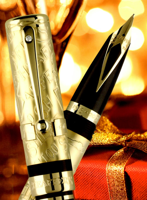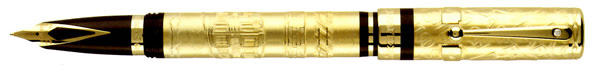 The gold and the silver pens have the same detailed relief engraving which showcases significant aspects of Sheaffer's history between 1913 and 2013. |