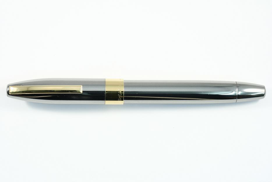 Polished gunmetal finish with 23ct gold electroplated trim, fitted with a solid 18ct gold nib.