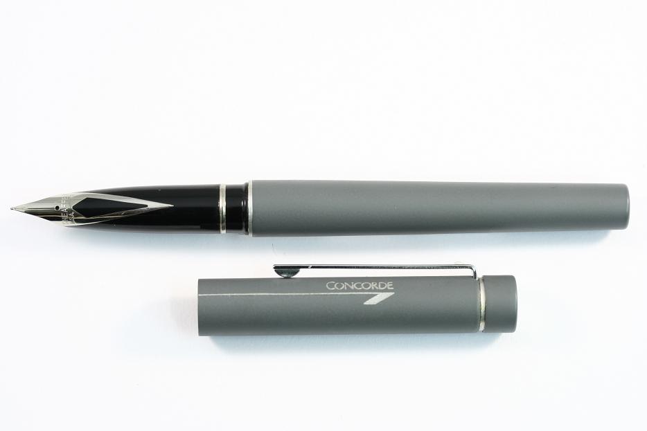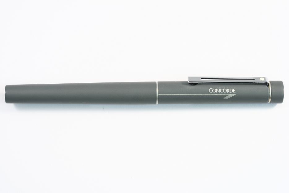 Matt grey finish with chrome plated trim and a matte grey ornament , fitted with a stainless steel nib.Completed with concorde logo on cap.