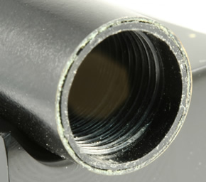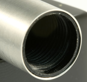 Both versions use a metal barrel bushing, with version six using a metal barrel plug on the end of the barrel, which again acts as protection for the finish on the barrel.