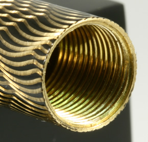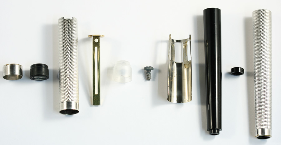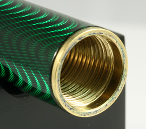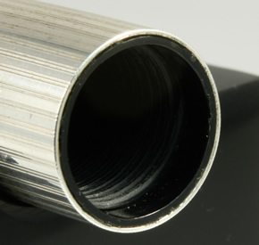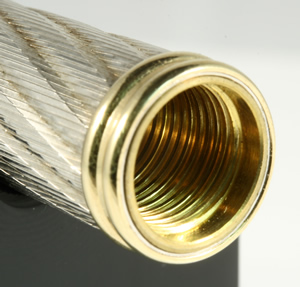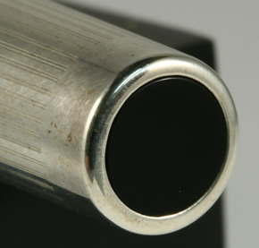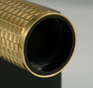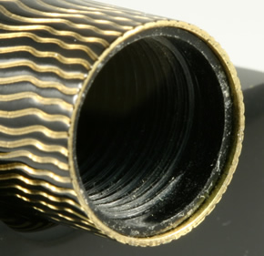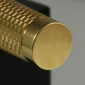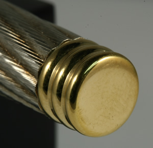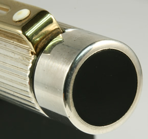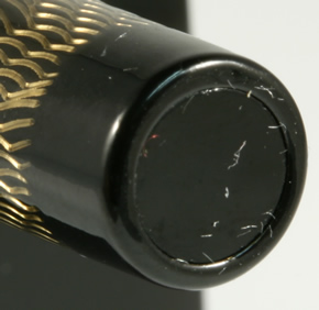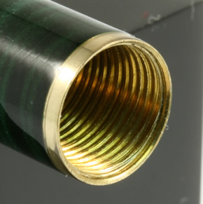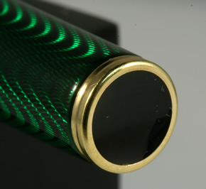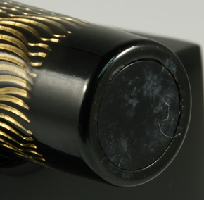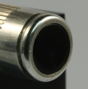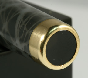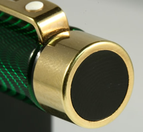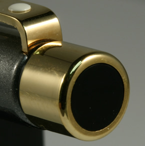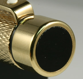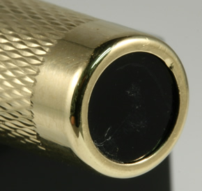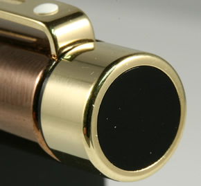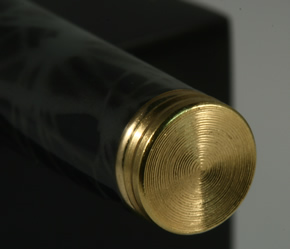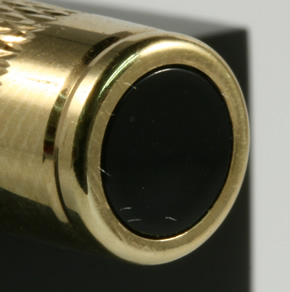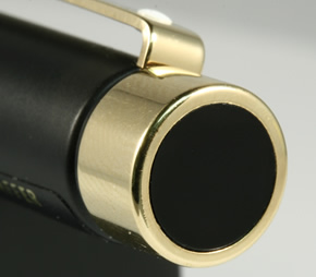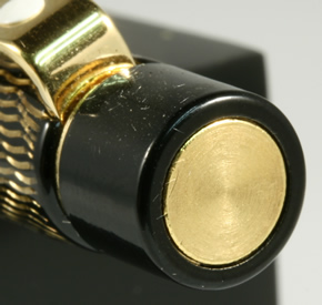 The slimline pens are made in two different versions, listed below as numbers six and seven. Like the Classic pens the slimline caps are made up with the same components in both versions and again some models have a heavier cap plug, which can be identified by the gold disc on the cap top.